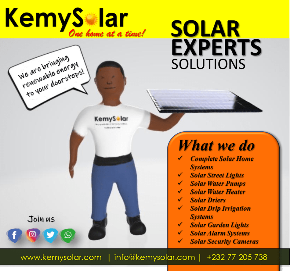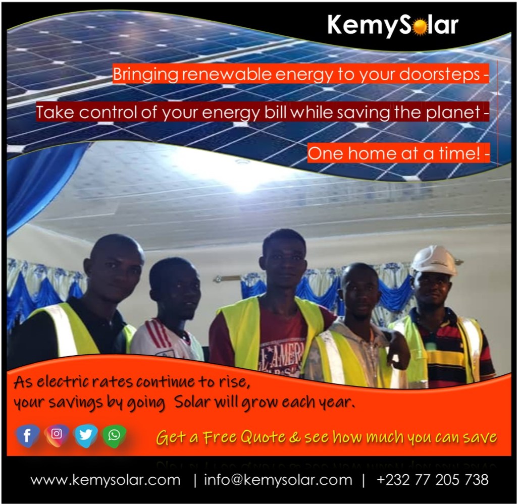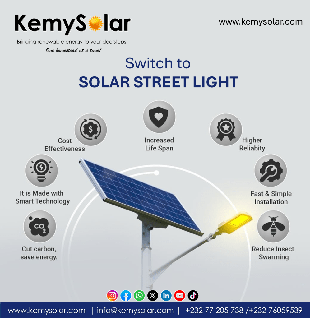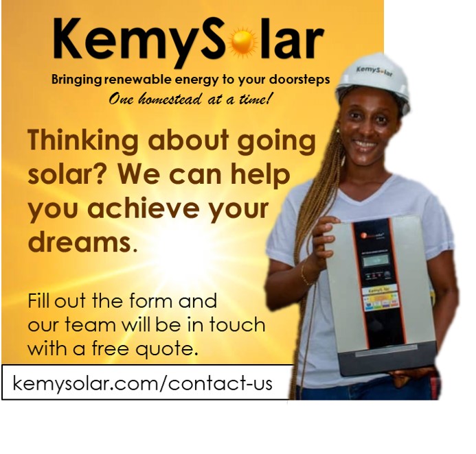 Where there is sunlight, there is no room for Darkness!Tired of Blackouts, Let us light up your homeThinking of going solar, think KemySolar.comThe Sun is Free, Electricity in NotSwitch to Solar Street LightClean Energy -KemySolarSolar Energy SolutionsRenwable, affordable, and environmentally friendlyHow does Energy Work – KemySolarWe go the extra mile to bring you HappinessBenefits of Solar EnergySolarPowered Mini Solar FanHighlighted LED solar street lightHigh Quality Solar PanelsEmpowering our future with Solar Energy